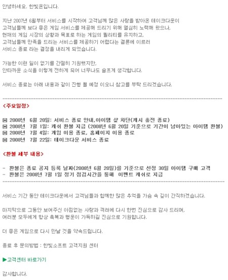 테이크다운이 2008년 7월 22일 서비스가 종료됨에 따라 해당 게임의 데이터 집계를 중단합니다.
