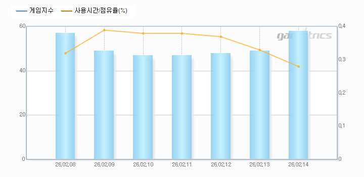 | 보드 장르지수는 게임트릭스에 등록된 보드의 게임사용시간 및 점유율의 추이를 기간별로 검색할 수 있는 서비스입니다. |